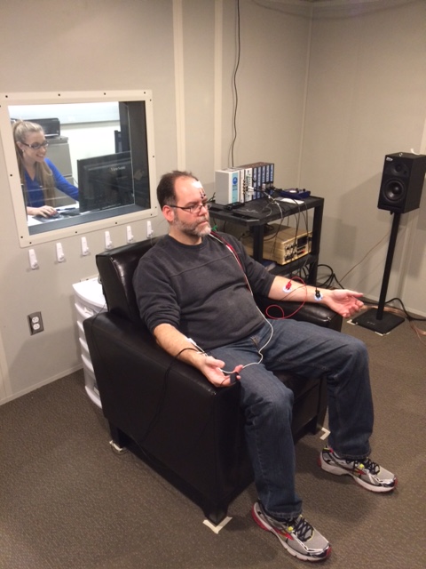 The booth is equipped with instruments for recording digital audio via a variety of microphones, millisecond-accurate response times via button-box (Cedrus RB-730), and a suite of physiological responses using a Biopac MP150 system.